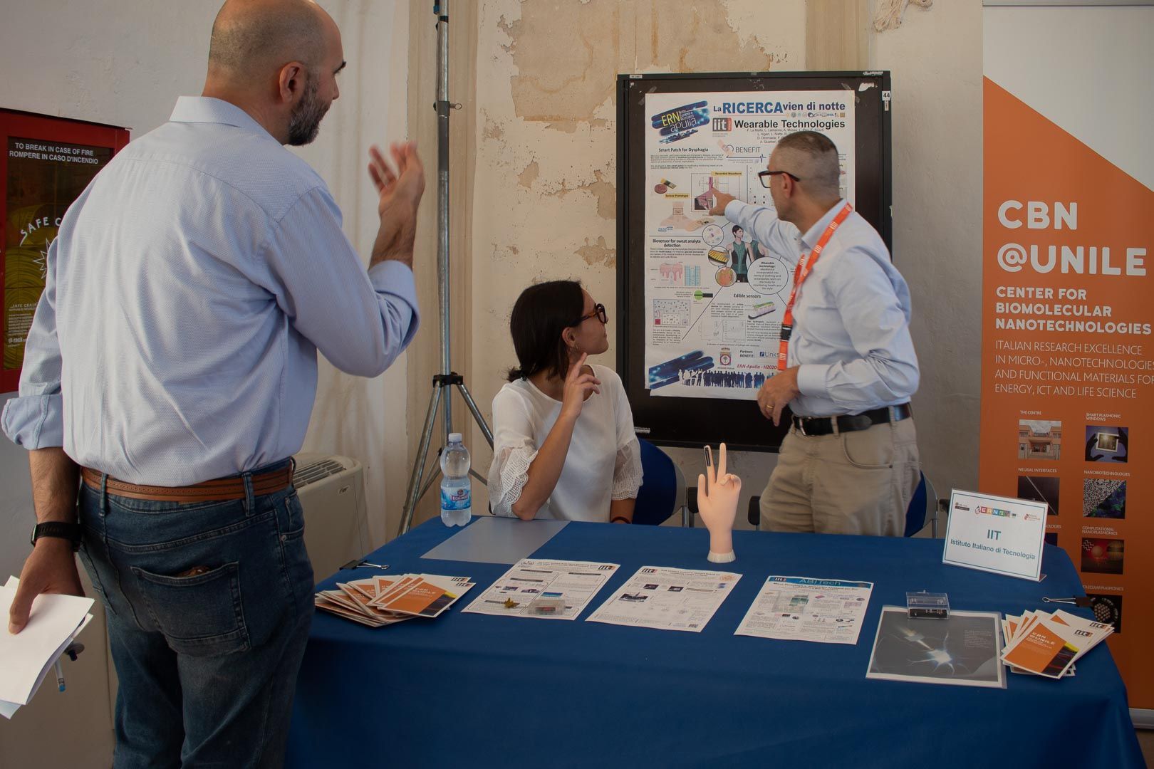 I partecipanti, previa registrazione online, hanno avuto l’inedita opportunità di recarsi presso il Centro per le Nanotecnologie Biomolecolari dell’Istituto Italiano di Tecnologia, sito a pochi passi dal Palazzo Marchesale di Arnesano. Tale esclusiva occasione ha consentito a tutti i presenti di visitare i laboratori, generalmente non accessibili al pubblico, e di confrontarsi con i ricercatori che vi prestano servizio.